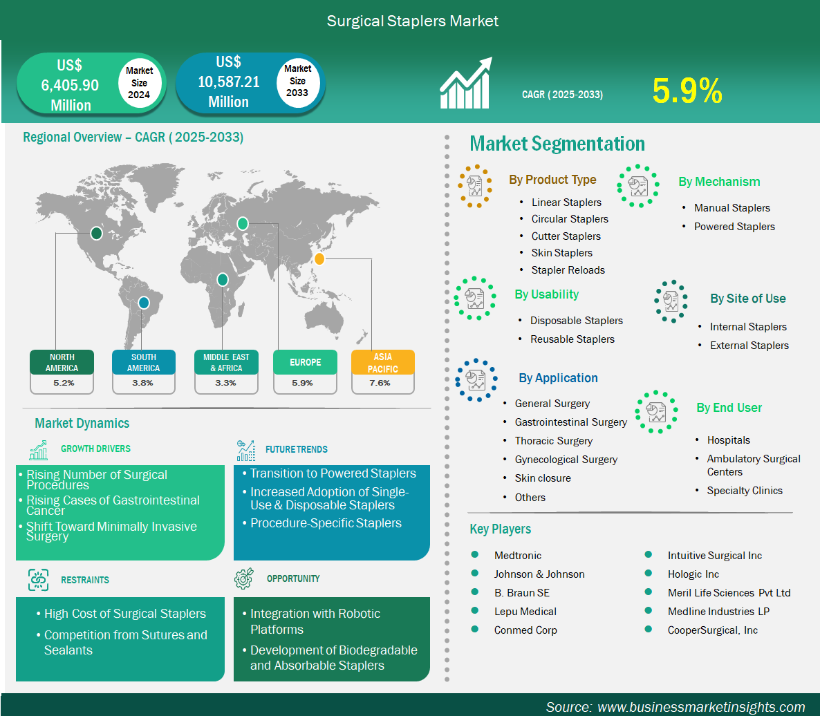 According to The Insights Partners Global Surgical Staplers Market is experiencing steady growth worldwide, driven by rising surgical volumes, rapid adoption of minimally invasive procedures, and continuous innovation in stapling technologies. Increasing chronic disease burden and expanding access to advanced surgical care in emerging economies are further strengthening market prospects across key regions.