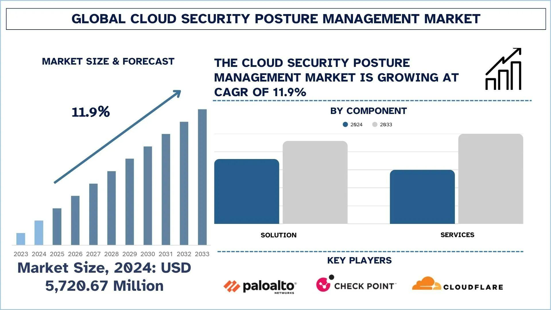 According to UnivDatos analysis, the rapid adoption of multi-cloud environments and the increasing frequency of cloud-related data breaches are the major factors driving the growth of the Cloud Security Posture Management market. As per their “Cloud Security Posture Management Market” report, the global market was valued at USD 5,720.67 million in 2024, growing at a CAGR of about 11.9% during the forecast period from 2025 - 2033 to reach USD million by 2033.