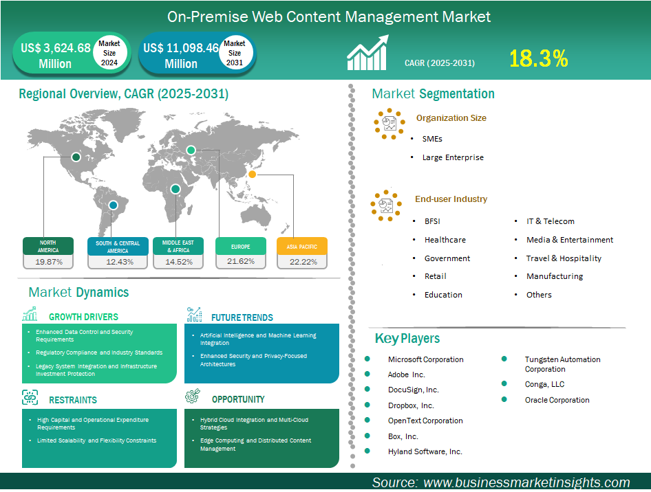 According to The Insights Partners On-Premise Web Content Management Market continues to demonstrate resilience amid evolving digital landscapes, empowering organizations with unparalleled control over content infrastructure and security protocols. Enterprises across regulated sectors prioritize these solutions for their customization depth and compliance alignment, ensuring seamless content orchestration without external dependencies. Leading platforms facilitate robust digital experience management tailored to complex operational needs.