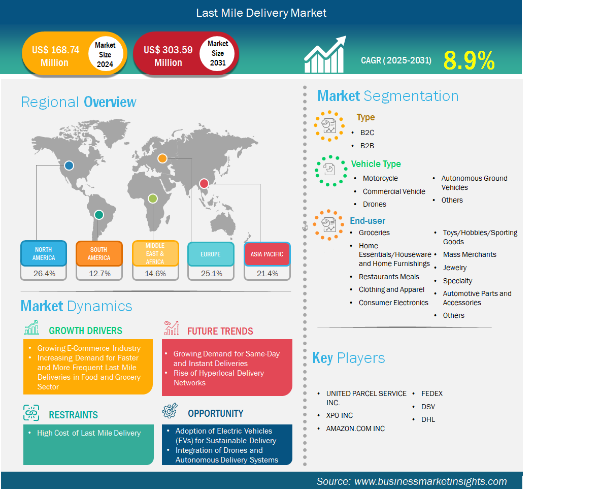 Major companies dominate the last mile delivery arena with strategic investments and partnerships. Amazon, UPS, FedEx, and DHL lead through AI integrations and expanded drone trials. Emerging players like DoorDash, Instacart, and Starship Technologies focus on on-demand grocery and robot deliveries.