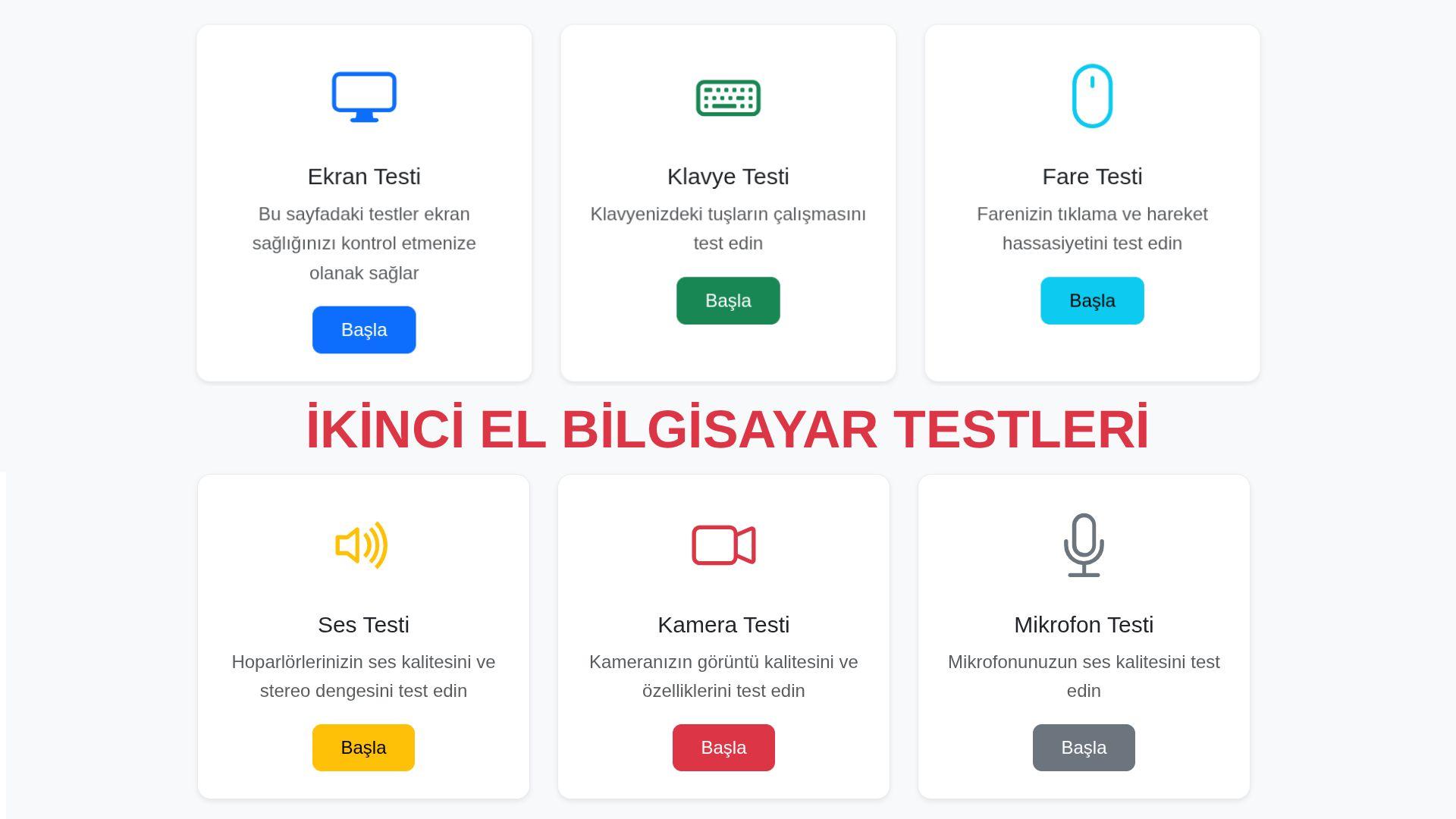 Bu testler doğrudan sitede tek tıkla başlatılır ve cihazınızın temel bileşenlerini hızlıca kontrol etmenizi sağlar: