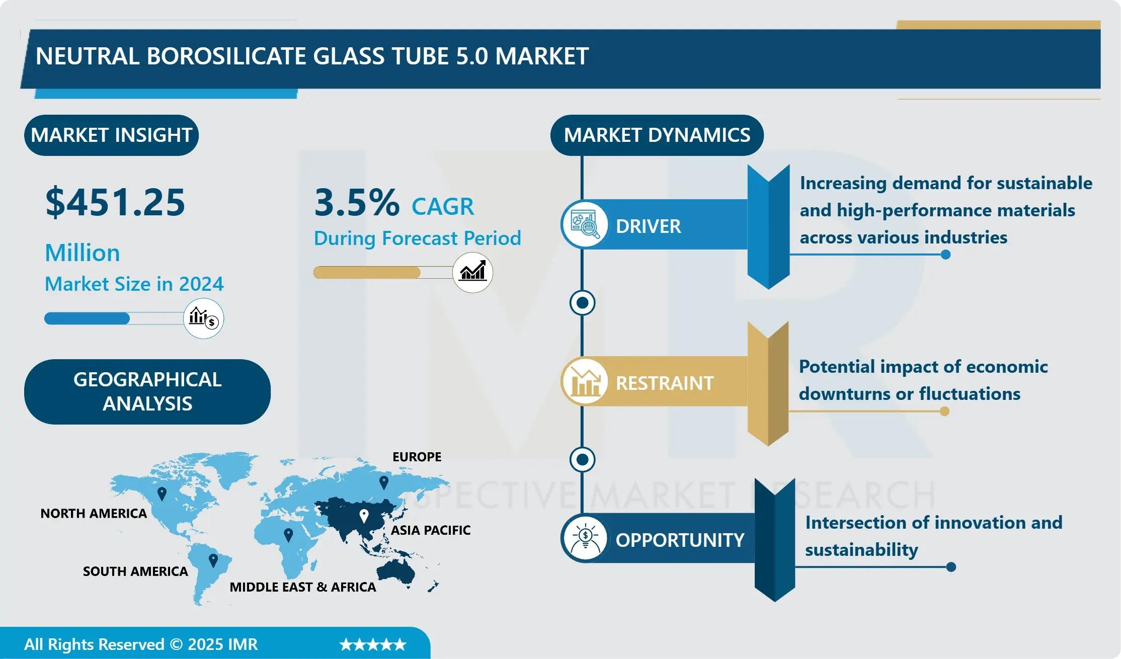 “According to a new report published by Introspective Market Research, Neutral Borosilicate Glass Tube 5.0 Market by Product Type, End-Use Industry, and Region, the Global Neutral Borosilicate Glass Tube 5.0 Market Size Was Valued at USD 451.25 Million in 2024 and is Projected to Reach USD 658.81 Million by 2035, Growing at a CAGR of 3.5% during the Forecast Period 2025–2035.”