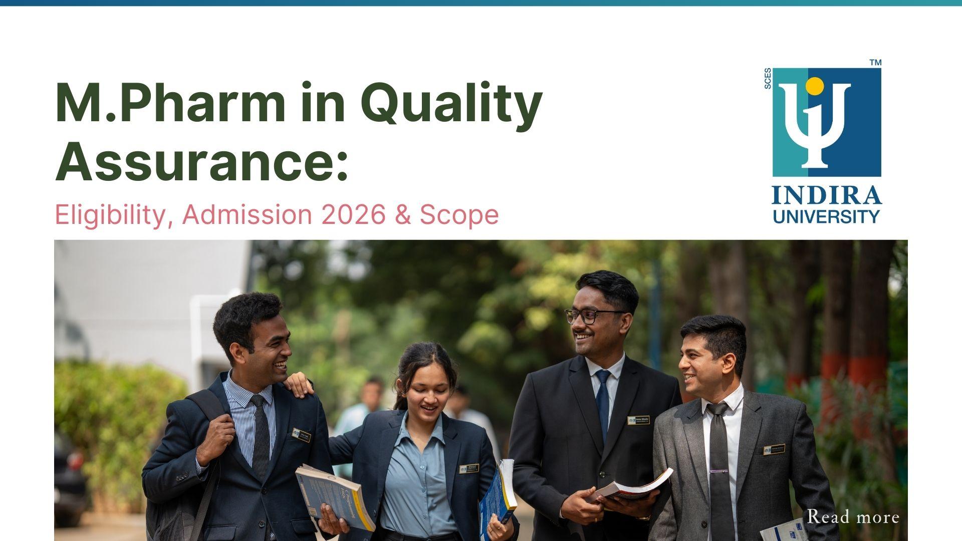 Choosing an M.Pharm in Pharmaceutical Quality Assurance from Indira University’s School of Pharmacy is a strategic decision for students who want to become quality stewards in the pharmaceutical industry. With clear eligibility standards, a structured admission process for 2026, vast career opportunities, and an expanding future scope, this course primes you for a fulfilling and impactful career.