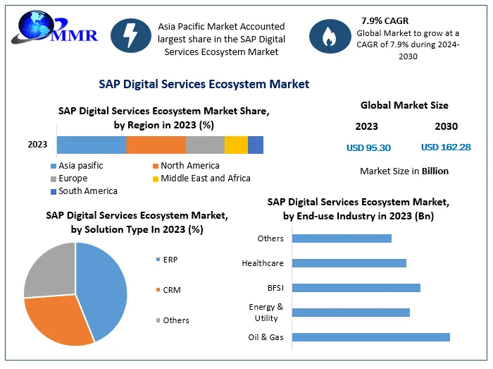 SAP Digital Services Ecosystem Market is expected to grow at a CAGR of 7.9% during the forecast period. Global SAP Digital Services Ecosystem Market is expected to reach US $ 162.28 Bn by 2030.