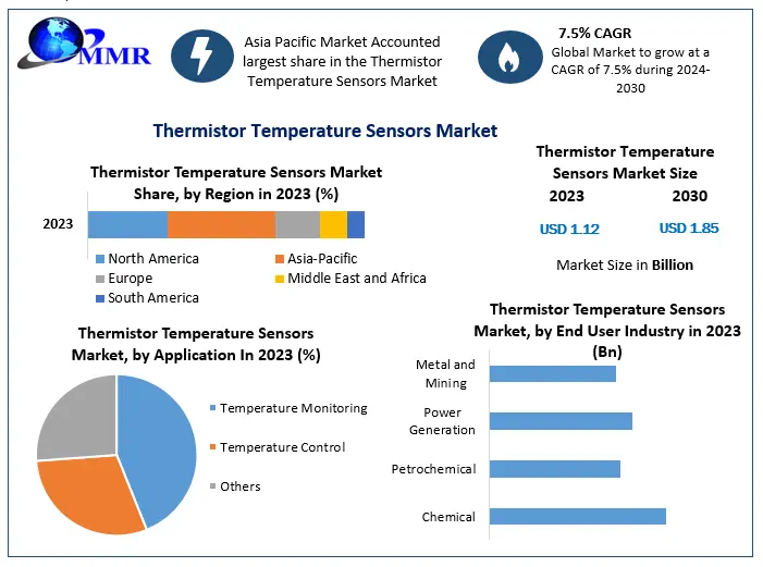 Thermistor Temperature Sensors Market size is expected to reach USD 1.85 Bn. by 2030, growing at a CAGR of 7.5% during the forecast period.