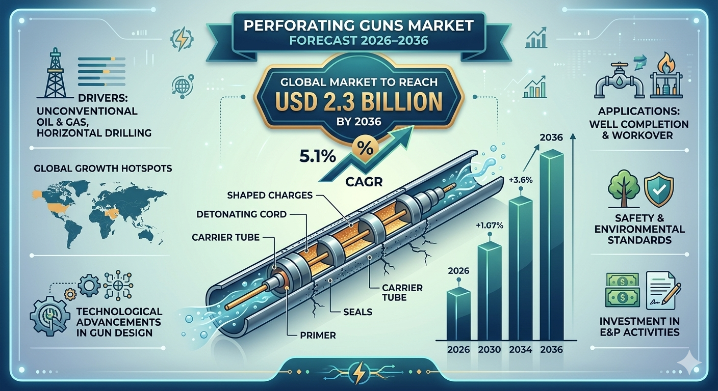 Perforating Guns Market Forecast 2026–2036: Global Market to Reach USD 2.3 Billion by 2036