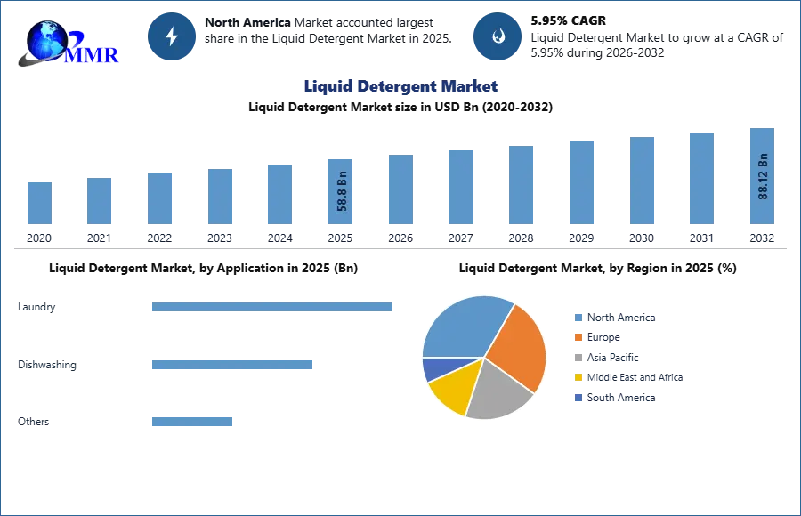 The Liquid Detergent Market size was valued at USD 58.8 billion in 2025 and the total Liquid Detergent Market revenue is expected to grow at a CAGR of 5.95 % from 2026 to 2032, reaching nearly USD 88.12 billion.