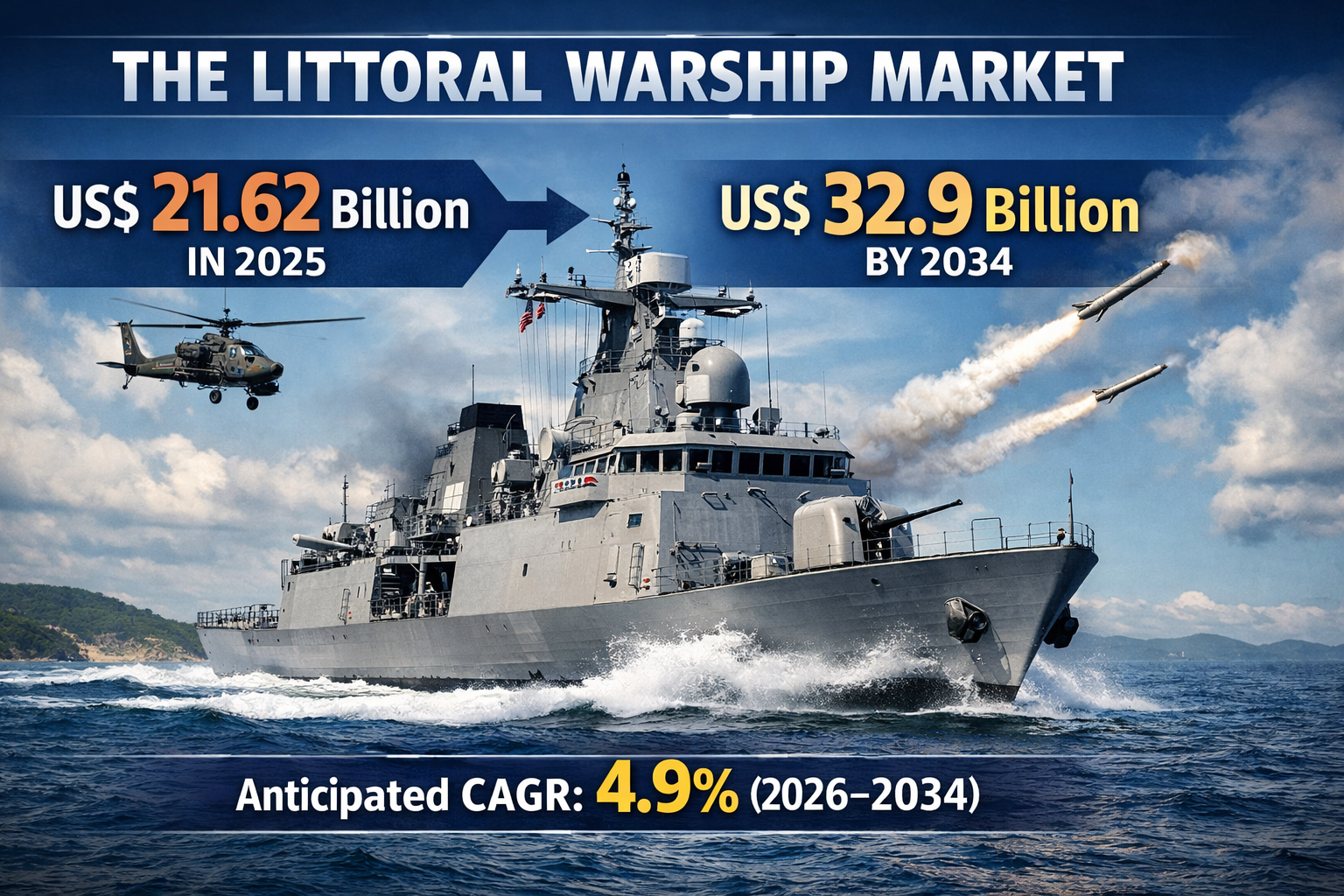 The global Littoral Warship Market is expected to witness steady expansion over the forecast period. The market size is projected to grow from US$ 21.62 billion in 2025 to US$ 32.9 billion by 2034, registering a CAGR of 4.9% during 2026–2034. This growth trajectory reflects increasing investments in naval modernization programs and rising geopolitical tensions across maritime regions. Governments worldwide are prioritizing advanced naval capabilities, contributing significantly to Littoral Warship Market Growth across both developed and emerging economies.
