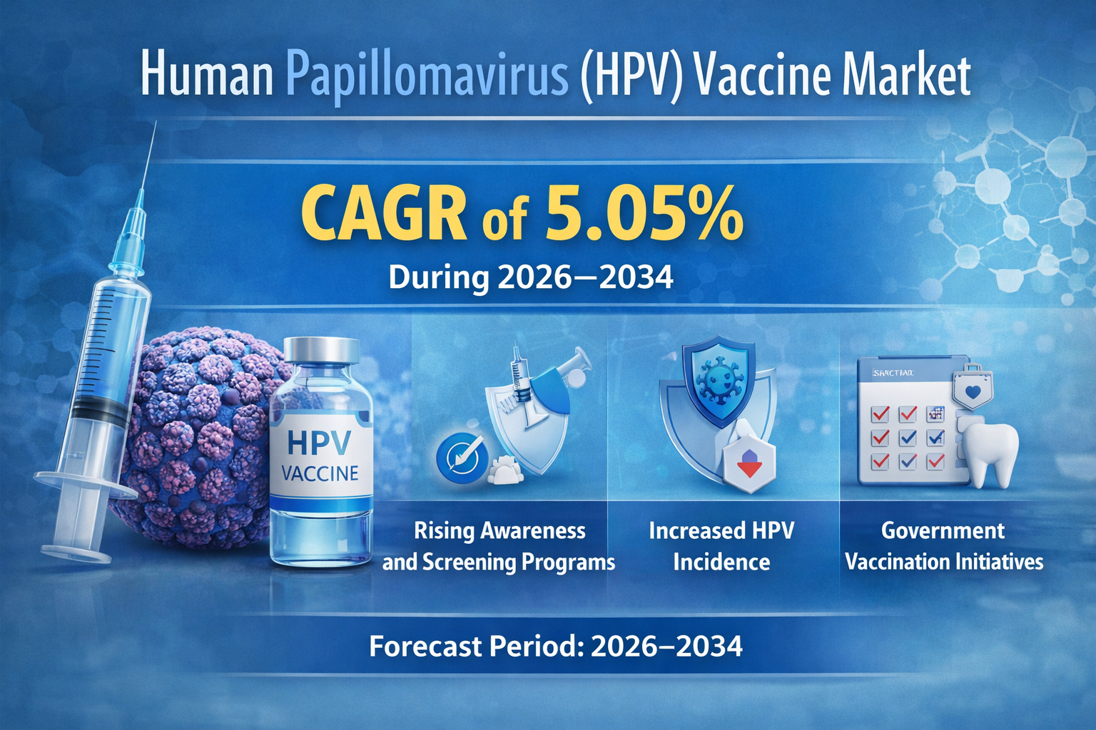 The market is supported by strong government initiatives, rising awareness about early vaccination, and the expansion of national immunization programs across both developed and developing countries. According to industry insights, the HPV vaccine market is projected to grow from US$ 4.95 billion in 2025 to US$ 7.71 billion by 2034, registering a compound annual growth rate (CAGR) of 5.05% during 2026–2034. This steady growth reflects the increasing global focus on preventive healthcare and long-term disease control strategies.