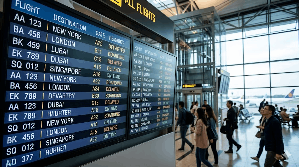 High-ceiling open concourse atriums where walls are remote from passenger flow paths, large check-in hall open spaces with multiple approach directions requiring 360-degree viewing coverage, and concourse intersections where passengers approach from multiple directions simultaneously are the primary design contexts where hanging installation achieves better viewing angle coverage than any wall-based alternative.