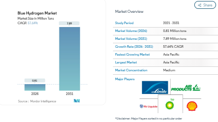 Global Blue Hydrogen Market Size, Share & Forecast 2031: High CAGR of 57.64%