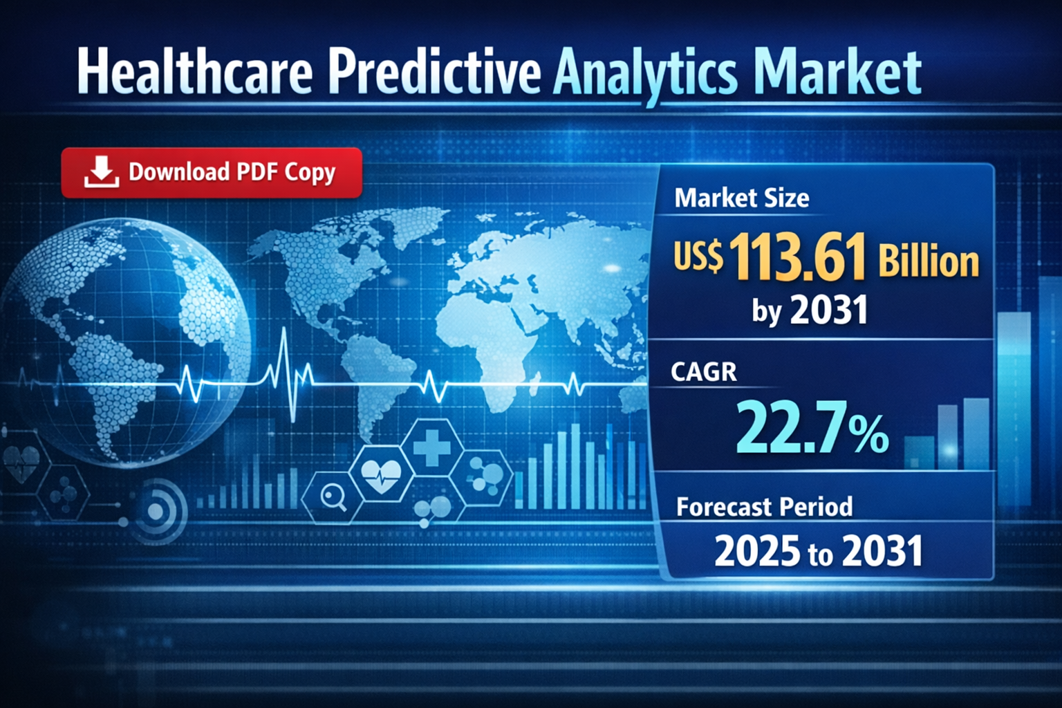 The healthcare predictive analytics market is undergoing rapid transformation, driven by the increasing need for data-driven decision-making, improved patient outcomes, and cost optimization. According to Healthcare Predictive Analytics Market Size, the global market is projected to reach US$ 113.61 billion by 2031, expanding at a strong CAGR of 22.7% during 2025–2031.