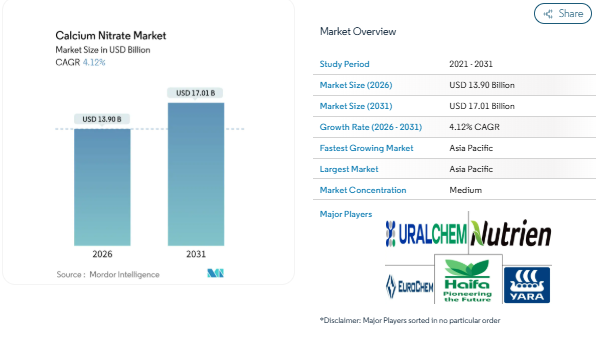 Unlock detailed segmentation, trends, and competitor analysis-click to learn more - https://www.mordorintelligence.com/industry-reports/calcium-nitrate-market?utm_source=gonuldagi