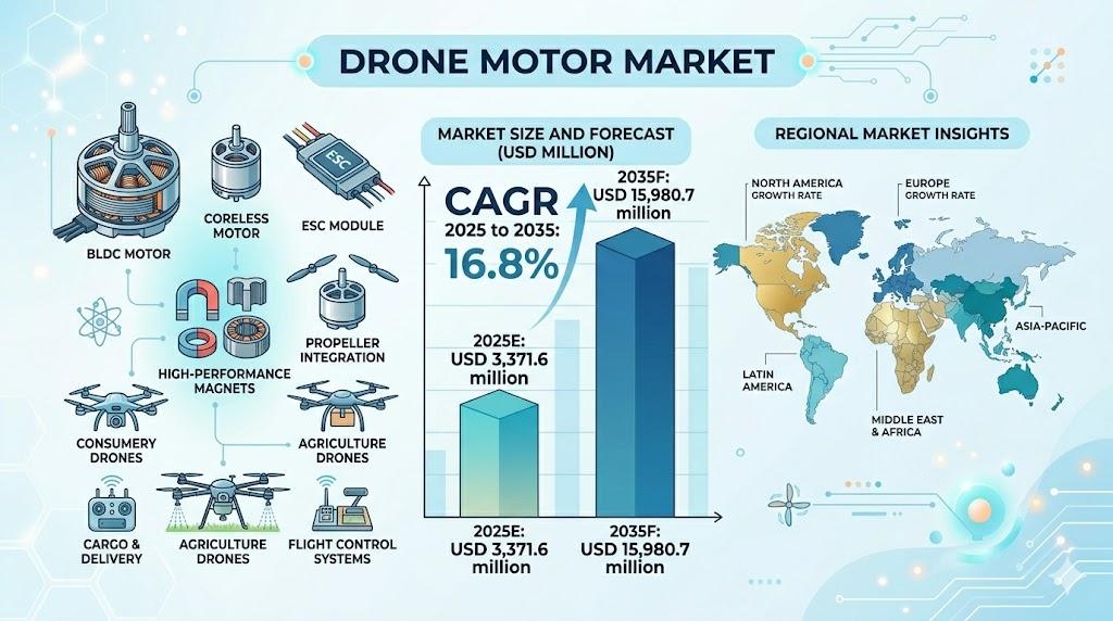 Drone Motor Market to Surpass USD 15,980.7 million by 2035