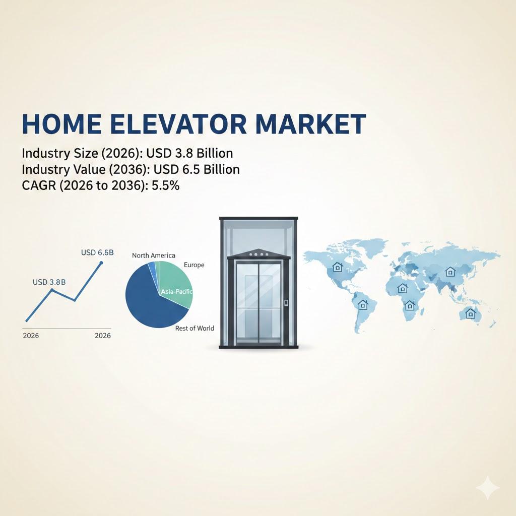 The global Home Elevator Market is projected to grow from USD 3.8 billion in 2026 to USD 6.5 billion by 2036, expanding at a CAGR of 5.5%, according to Future Market Insights (FMI). Growth is structurally anchored in demographic aging, rising multi-story residential construction, and the commercialization of shaft-free and pit-free elevator systems that simplify retrofit installations.