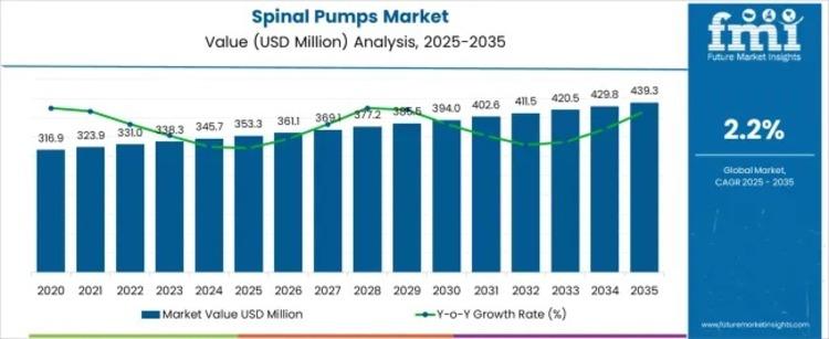 The Spinal Pumps Market is projected to grow from USD 353.3 million in 2025 to USD 439.3 million by 2035, at a CAGR of 2.2%. Rising prevalence of chronic pain, neurological disorders, and spasticity is driving demand for precise intrathecal therapy over systemic drug delivery. Spinal pumps offer precise medication delivery directly into the spinal fluid, reducing side effects and improving patient quality of life.