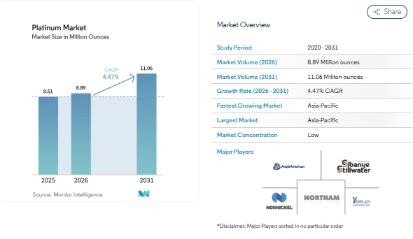Unlock detailed segmentation, trends, and competitor analysis-click to learn more - https://www.mordorintelligence.com/industry-reports/platinum-market?utm_source=gonuldagi