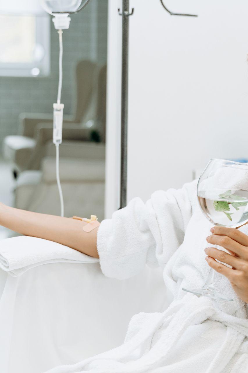 3. Infusion: The nutrient blend drips slowly over 30 to 45 minutes.