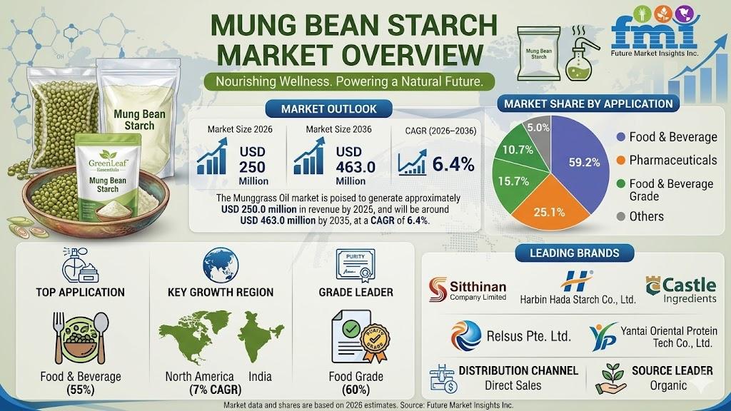 NEWARK, Del., USA | April 17, 2026 — According to the latest market analysis by Future Market Insights (FMI), the global mung bean starch market is poised for steady growth, driven by increasing demand for clean-label ingredients, superior gelling properties, and consistent performance in high-temperature food processing environments.