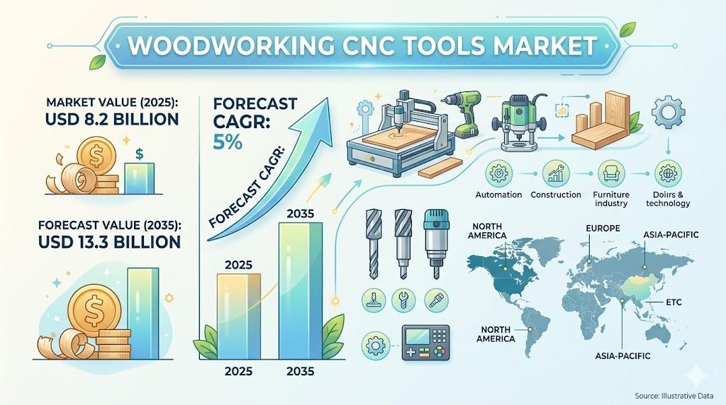 Woodworking CNC Tools Market to Surpass USD 13.3 billion by 2035