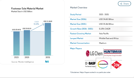 Unlock detailed segmentation, trends, and competitor analysis-click to learn more - https://www.mordorintelligence.com/industry-reports/footwear-sole-material-market?utm_source=gonuldagi