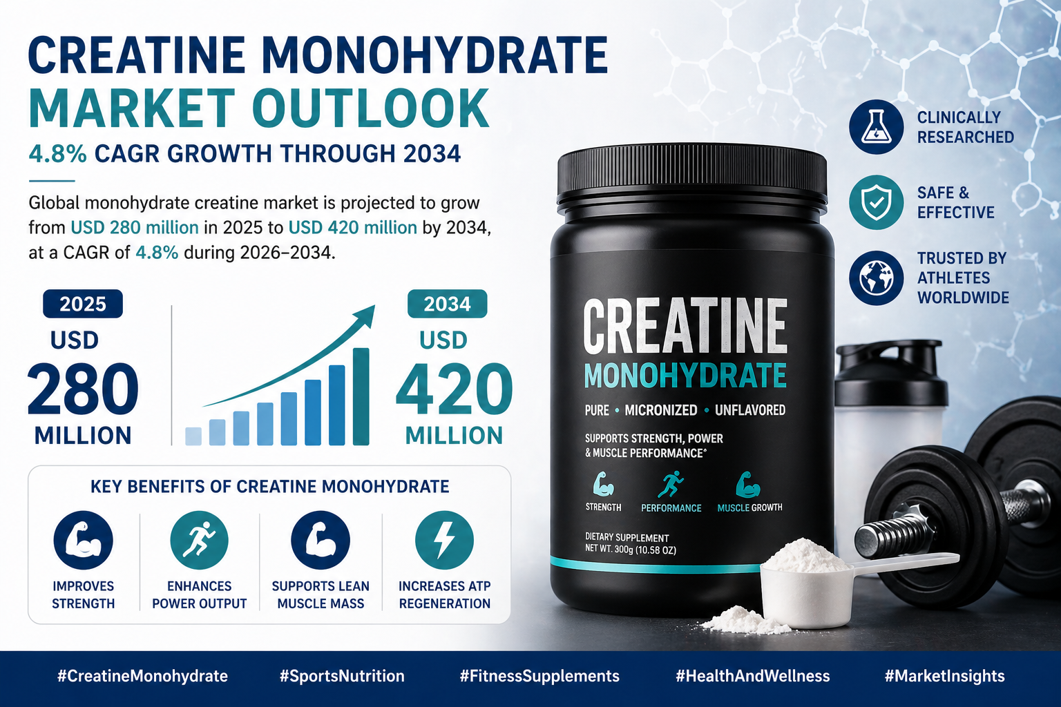 Creatine Monohydrate Market Outlook: 4.8% CAGR Growth Through 2034