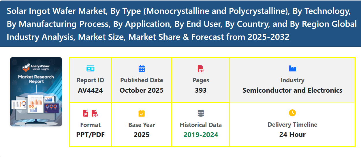 The Solar Ingot Wafer Market is a critical segment of the global solar photovoltaic (PV) value chain, serving as the foundational material from which solar cells are produced. Solar ingots—typically monocrystalline or multicrystalline silicon blocks—are sliced into ultra-thin wafers that form the active semiconductor layer in solar modules. As global efforts toward renewable energy accelerate, the demand for high-quality solar ingot wafers continues to expand at a robust pace.