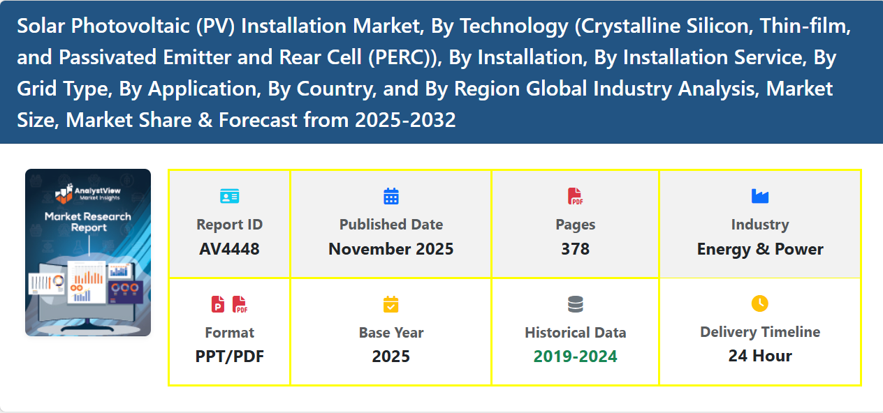 The Solar Photovoltaic (PV) Installation Market continues to accelerate as global energy systems shift toward clean, decentralized, and sustainable power generation. Solar PV installations have become one of the fastest-growing segments within the renewable- energy landscape, driven by declining module costs, improved efficiency, supportive government policies, and rising environmental awareness. The market includes residential rooftops, commercial solar systems, utility-scale solar farms, and off-grid installations that support rural electrification and industrial operations.