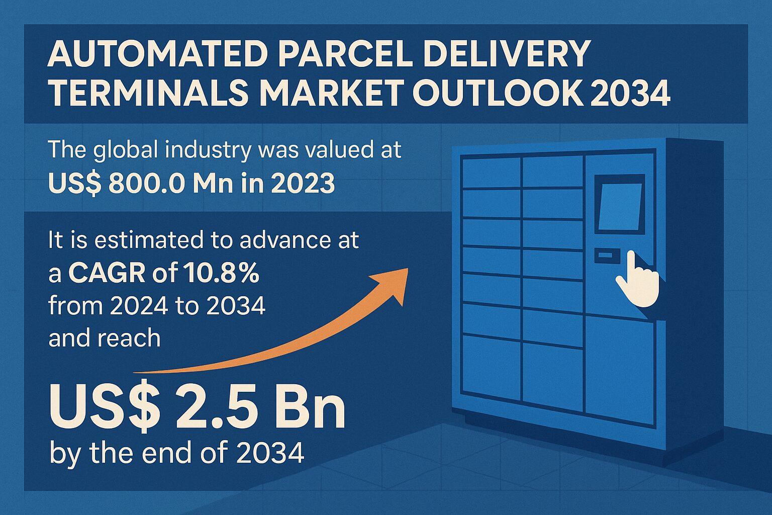 The Automated Parcel Delivery Terminals Market is undergoing rapid transformation as global logistics, e-commerce, retail, and smart-city infrastructure evolve. The rise of digital shopping and the demand for seamless, secure, and flexible parcel handling have turned automated terminals—often referred to as smart lockers or automated parcel stations—into a core component of modern delivery ecosystems. With a value of US$ 800 Mn in 2023, the market is forecast to reach US$ 2.5 Bn by 2034, registering an impressive 10.8% CAGR.