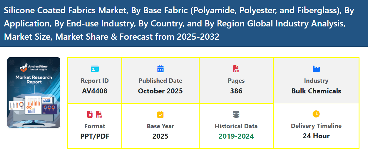 The Silicone Coated Fabrics Market is witnessing robust growth as industries increasingly adopt high-performance textiles for diverse applications, ranging from automotive and aerospace to construction, healthcare, and industrial sectors. Silicone-coated fabrics are engineered by applying a thin silicone layer onto base materials such as polyester, nylon, or fiberglass, enhancing properties like water resistance, flame retardancy, chemical stability, elasticity, and UV resistance. These versatile characteristics make silicone-coated fabrics ideal for demanding environments where durability and performance are critical.