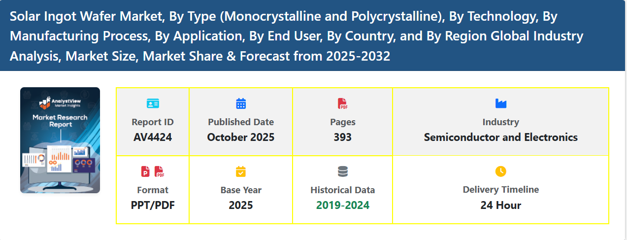 The Solar Ingot Wafer Market is a critical segment of the global solar photovoltaic (PV) value chain, serving as the foundational material from which solar cells are produced. Solar ingots—typically monocrystalline or multicrystalline silicon blocks—are sliced into ultra-thin wafers that form the active semiconductor layer in solar modules. As global efforts toward renewable energy accelerate, the demand for high-quality solar ingot wafers continues to expand at a robust pace.