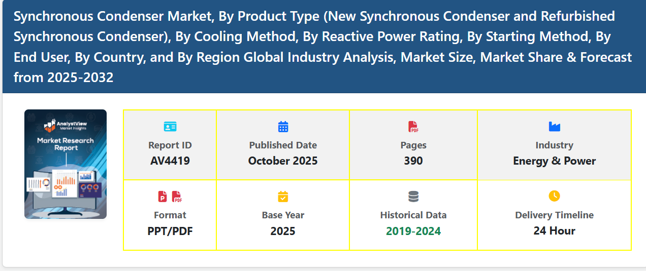 The Synchronous Condenser Market is expanding rapidly as global power systems undergo modernization to accommodate renewable energy integration and grid stability requirements. A synchronous condenser is a rotating electrical machine that improves the reliability and efficiency of power networks by providing reactive power compensation, voltage regulation, and short-circuit strength. With the increasing penetration of wind, solar, and distributed energy resources, traditional grid stability mechanisms are becoming insufficient, making synchronous condensers a critical tool for balancing power fluctuations.
