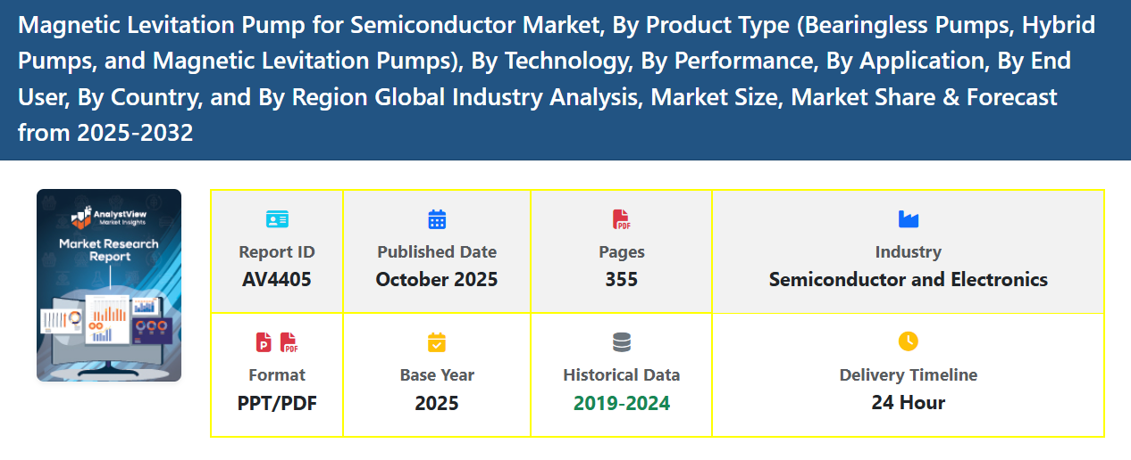 The Magnetic Levitation (MagLev) Pump for Semiconductor Market is witnessing strong growth as the semiconductor industry increasingly demands ultra-clean, precise, and efficient fluid handling solutions. Magnetic levitation pumps use magnetic forces to suspend the impeller, eliminating mechanical contact and reducing contamination risks, vibration, and maintenance requirements. These features make them ideal for semiconductor manufacturing, where ultrapure water (UPW), chemicals, and corrosive liquids must be delivered with exceptional reliability and minimal particle generation.