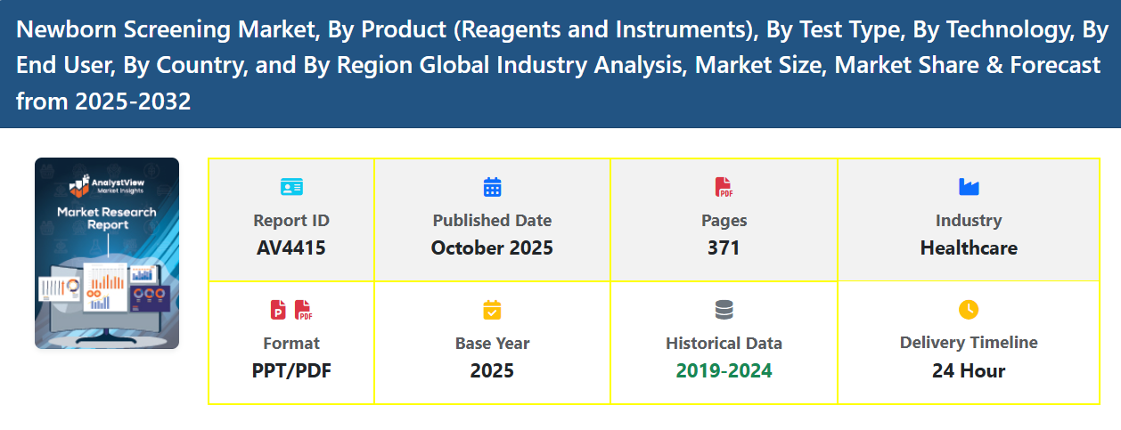The Newborn Screening Market is witnessing steady and consistent growth as healthcare systems worldwide prioritize early diagnosis of congenital and metabolic disorders in infants. Newborn screening plays a critical role in preventive healthcare, enabling clinicians to detect conditions such as phenylketonuria (PKU), congenital hypothyroidism, cystic fibrosis, and various hemoglobinopathies within days of birth. Early identification allows timely treatment, reducing the risk of lifelong health complications and improving long-term outcomes.