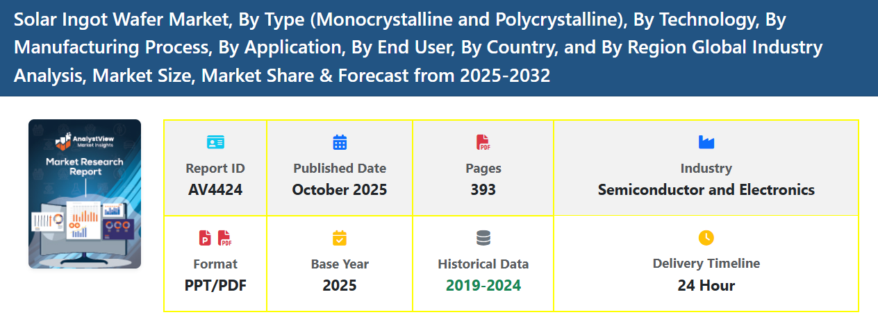 The Solar Ingot Wafer Market is a critical segment of the global solar photovoltaic (PV) value chain, serving as the foundational material from which solar cells are produced. Solar ingots—typically monocrystalline or multicrystalline silicon blocks—are sliced into ultra-thin wafers that form the active semiconductor layer in solar modules. As global efforts toward renewable energy accelerate, the demand for high-quality solar ingot wafers continues to expand at a robust pace.